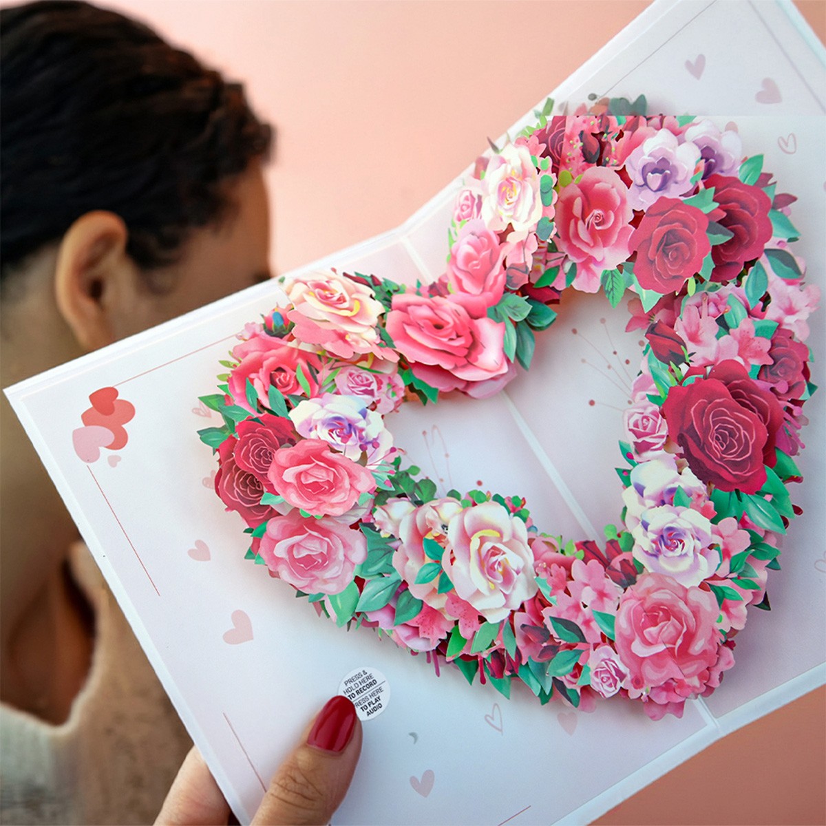 Il Biglietto di auguri romantico con dedica sonora diventa così un modo speciale per fare gli auguri a San Valentino, a un anniversario e in altre occasioni speciali come la Festa della Mamma o per ogni persona a cui volete bene.