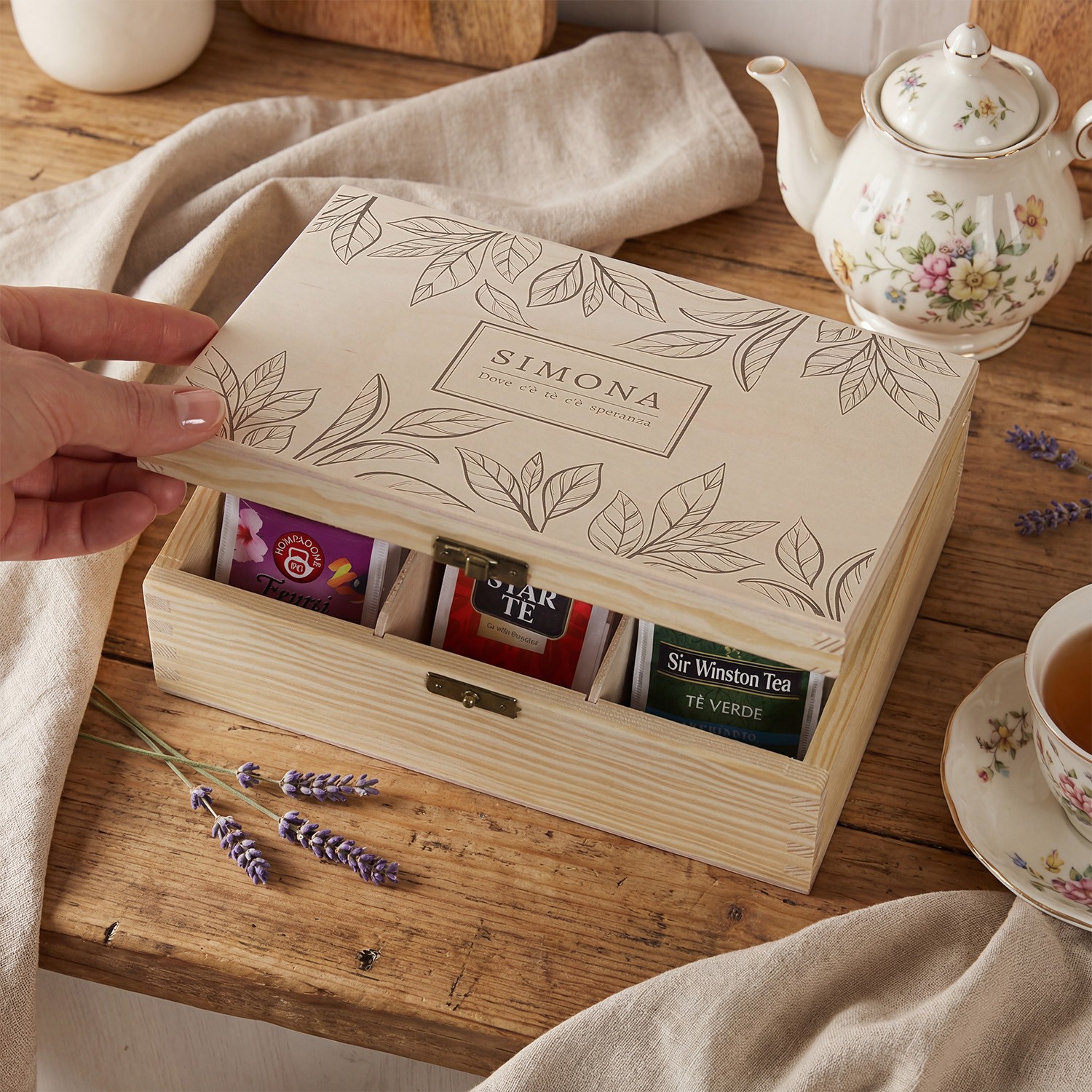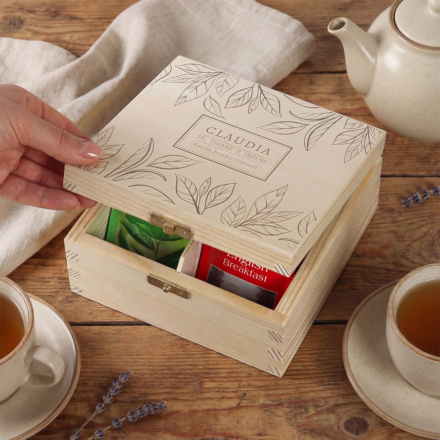 - Una scatola in legno per mettere le bustine di tè e altri infusi